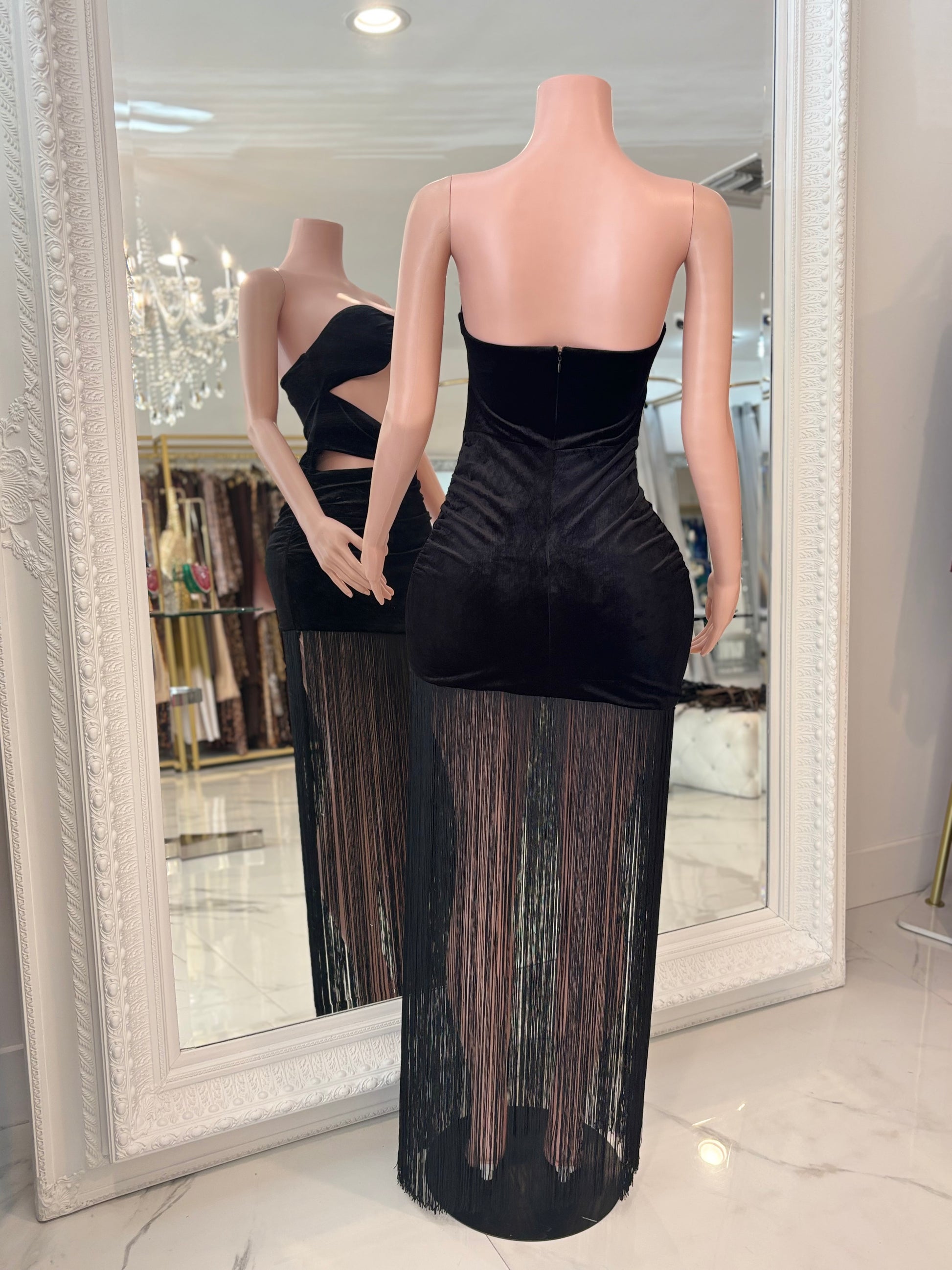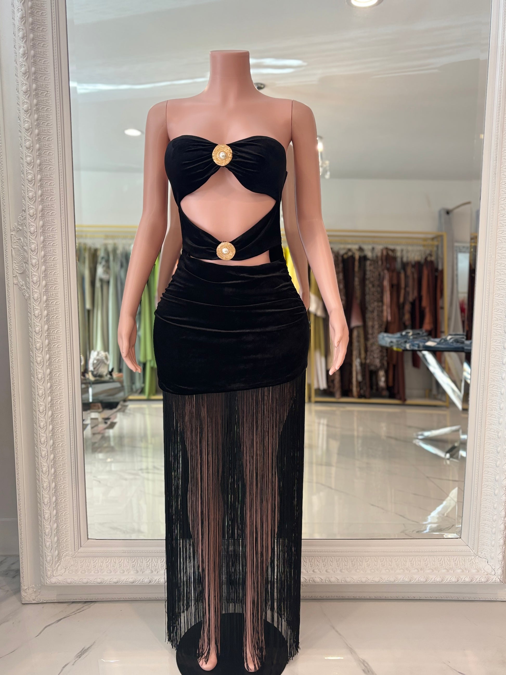Phantom Muse Ruched Pearl Maxi Dress Black