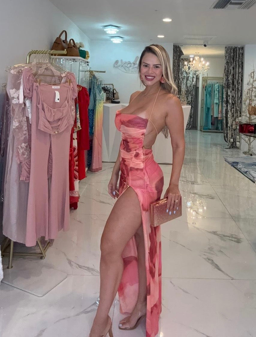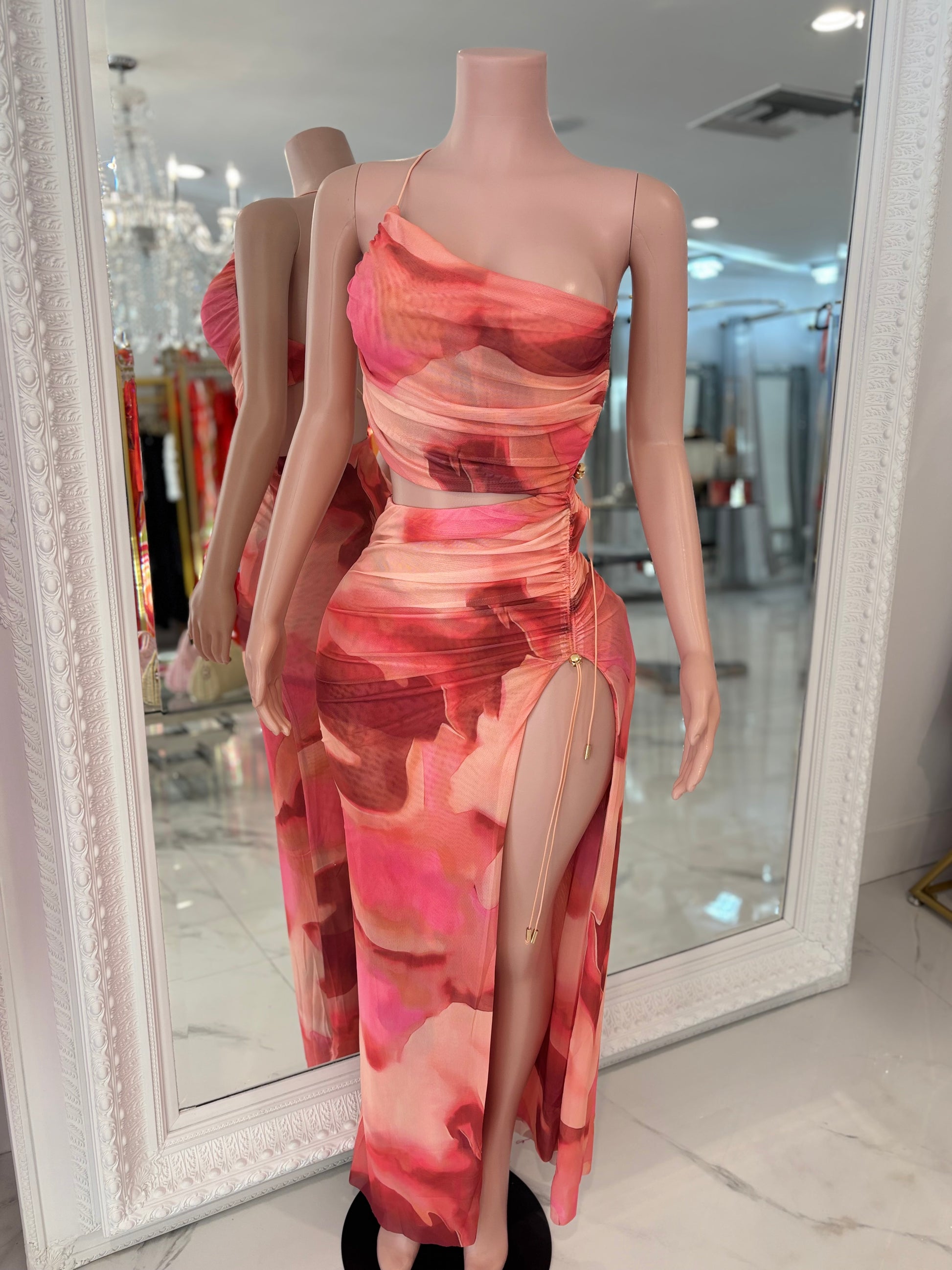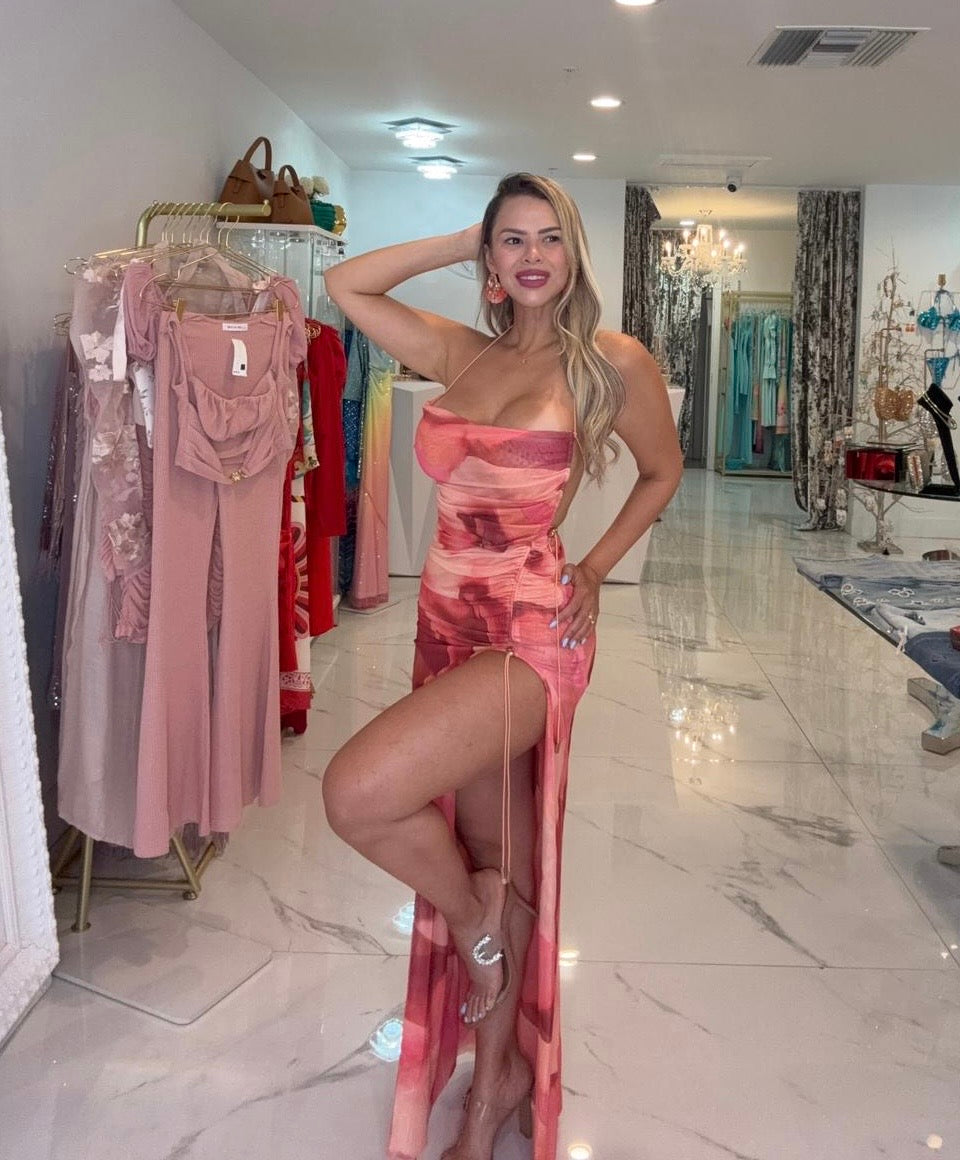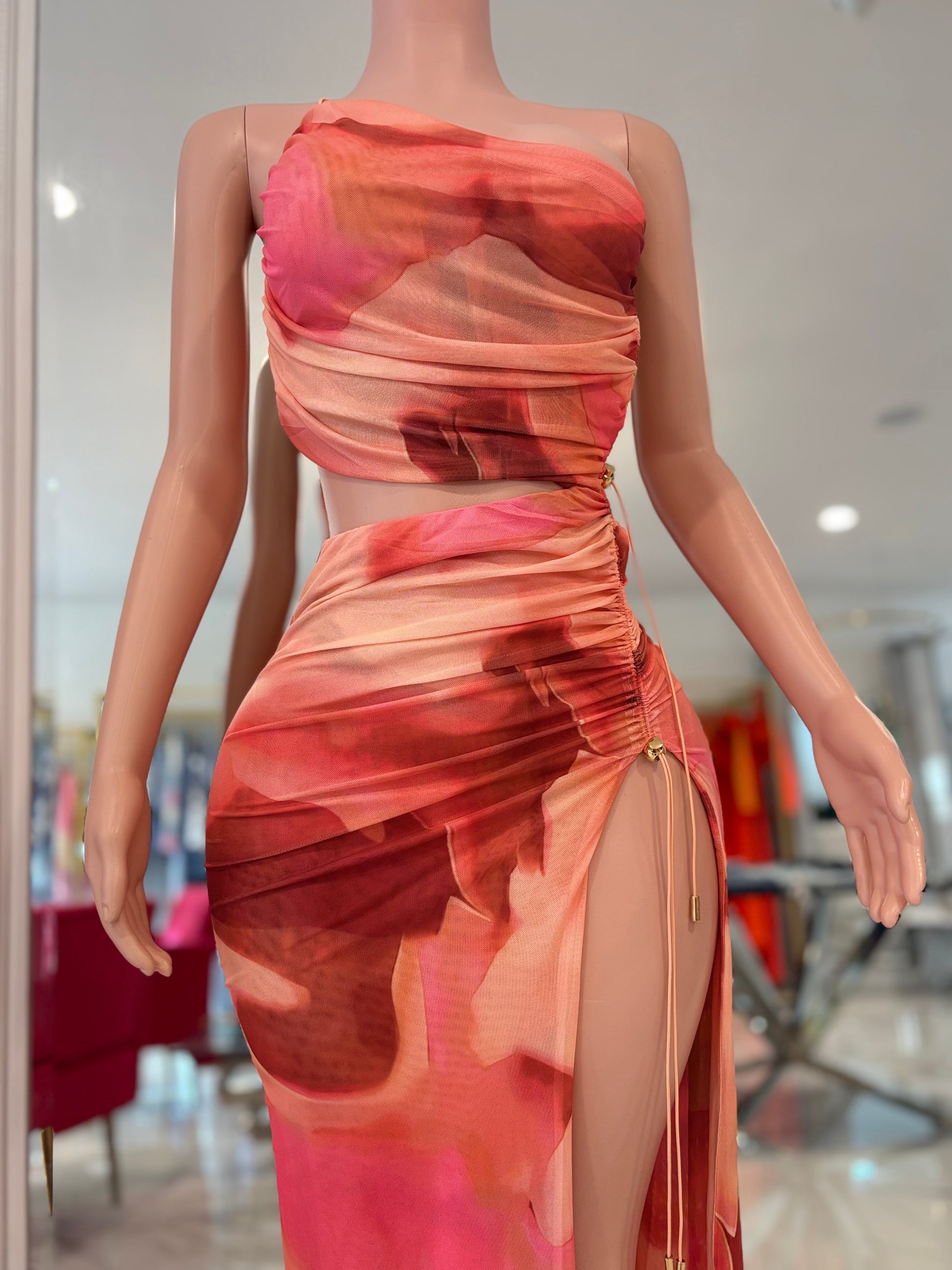 Ember Rush Mesh Ruched Maxi Dress Orange