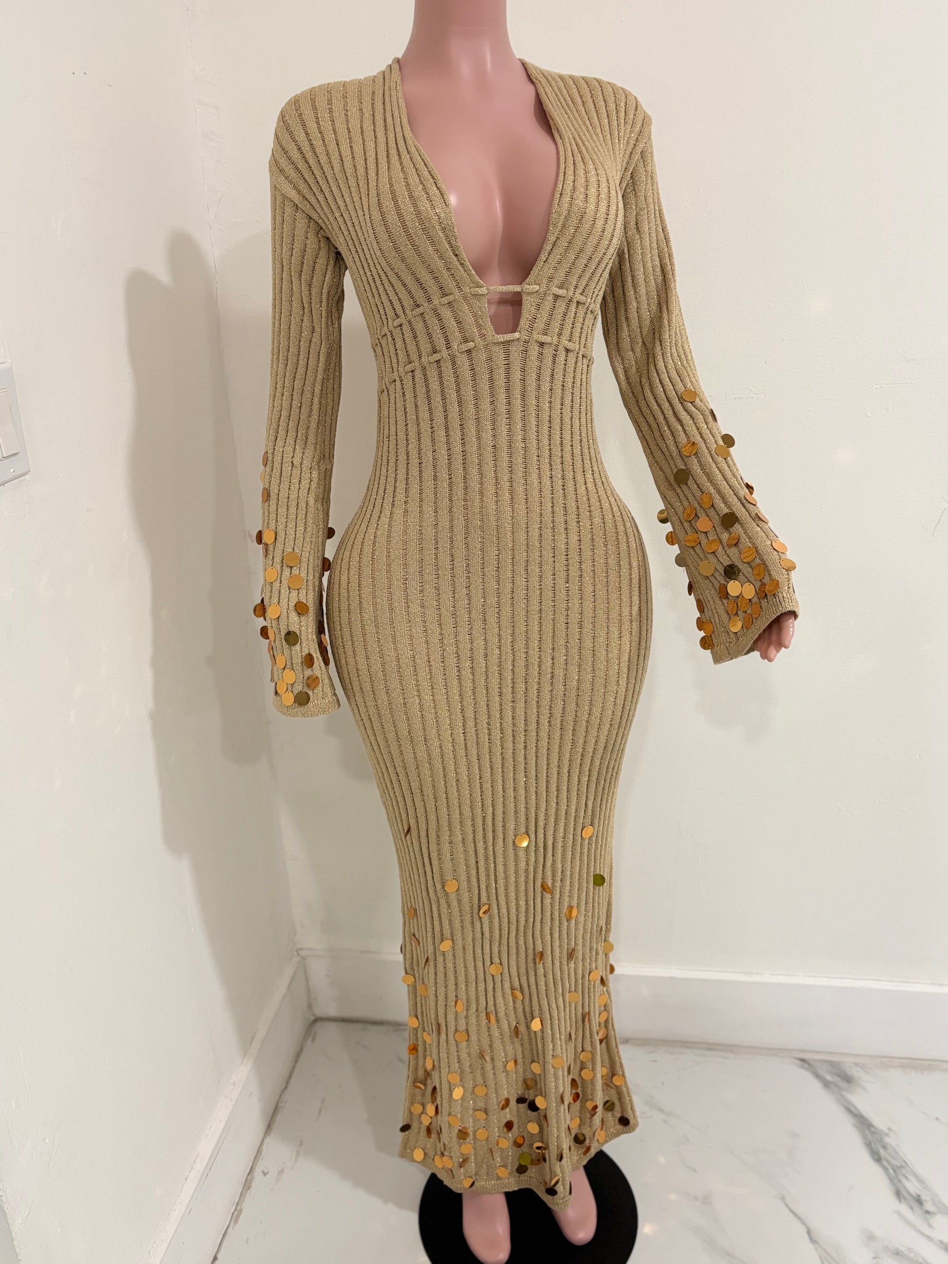 Solstice Glow Knit Sequin Maxi Dress Gold