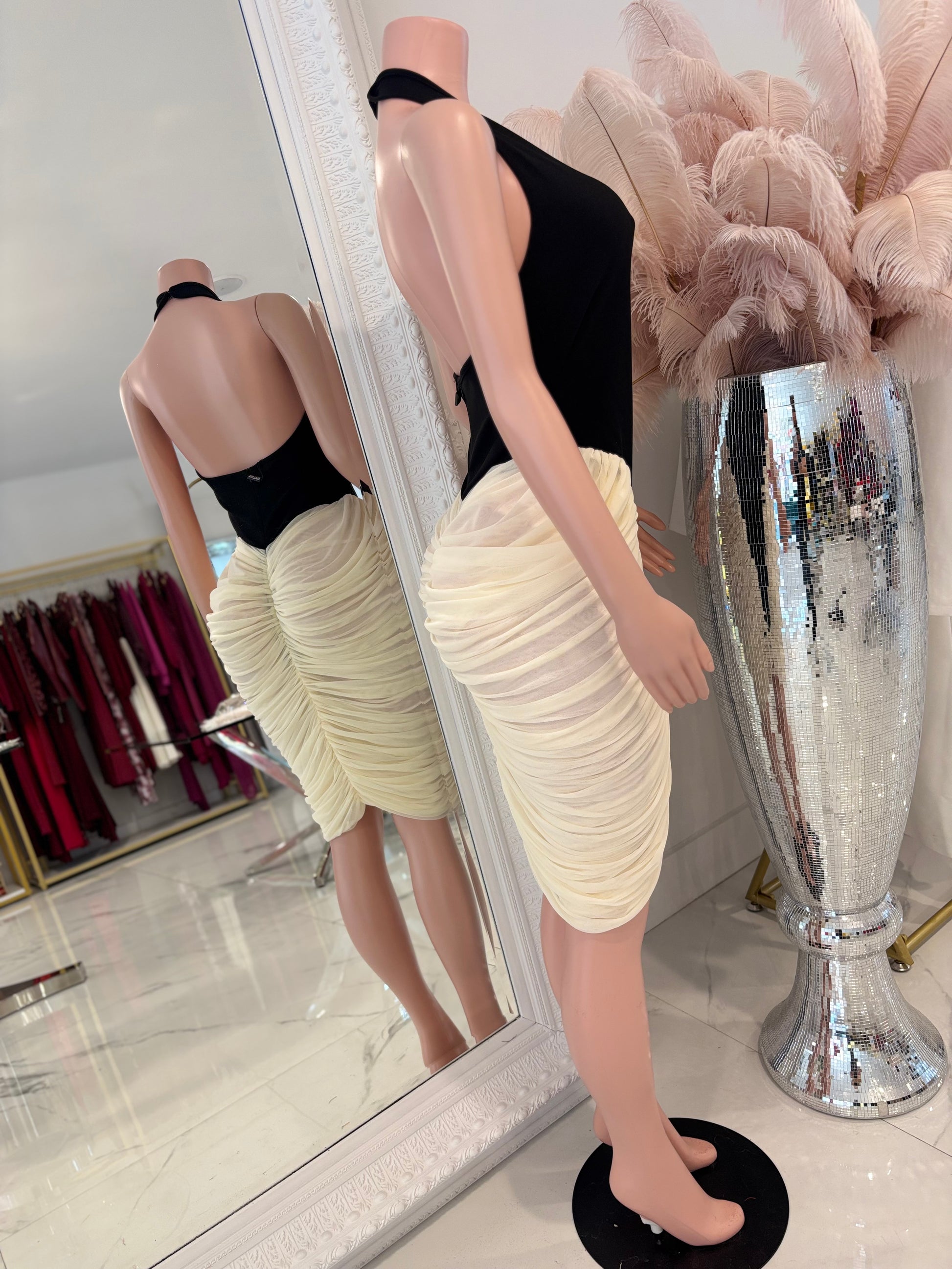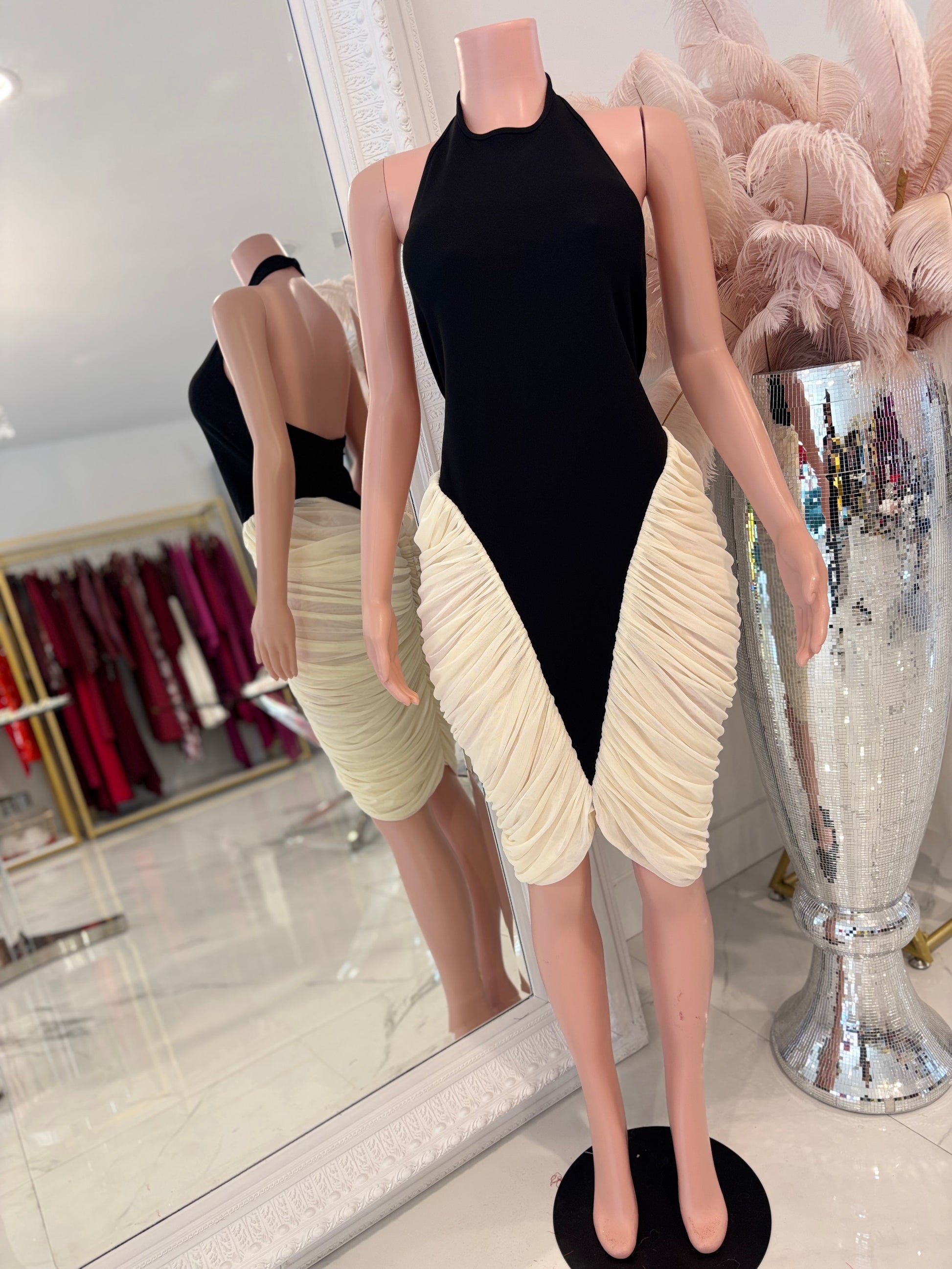 Mistress of the Night Mini Dress Black and White