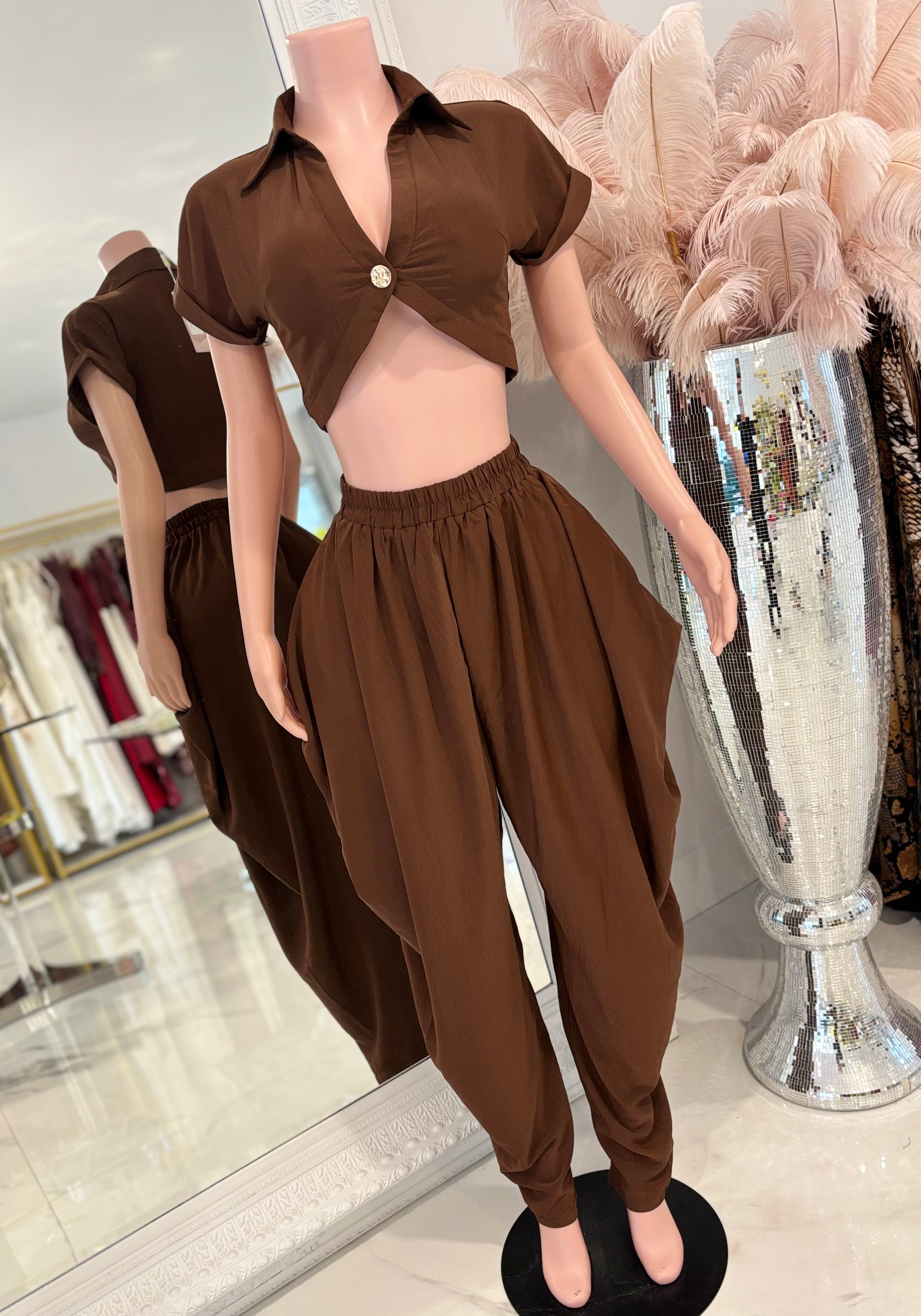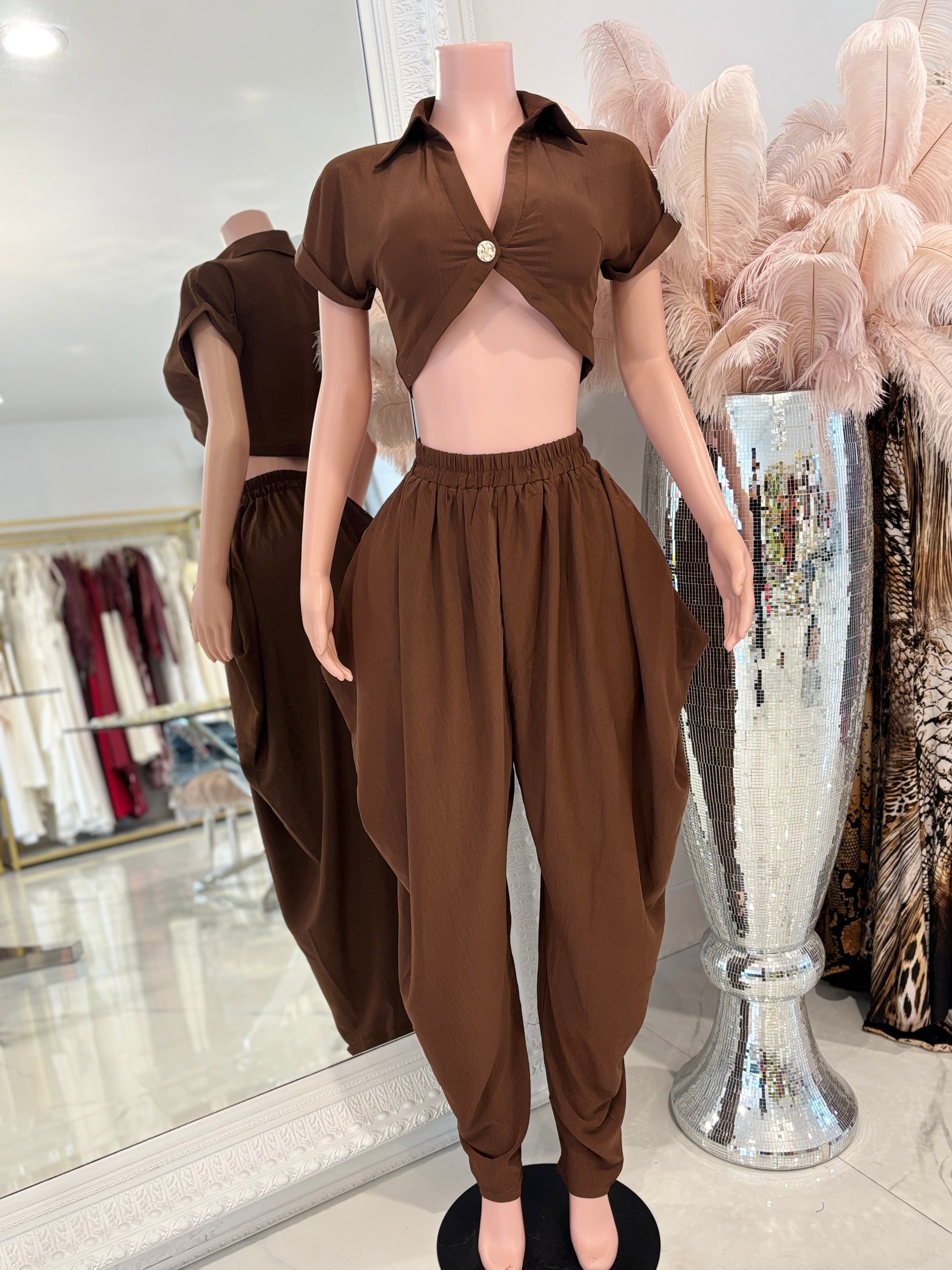 Don’t Even Bother Boy Pant Set Bronw